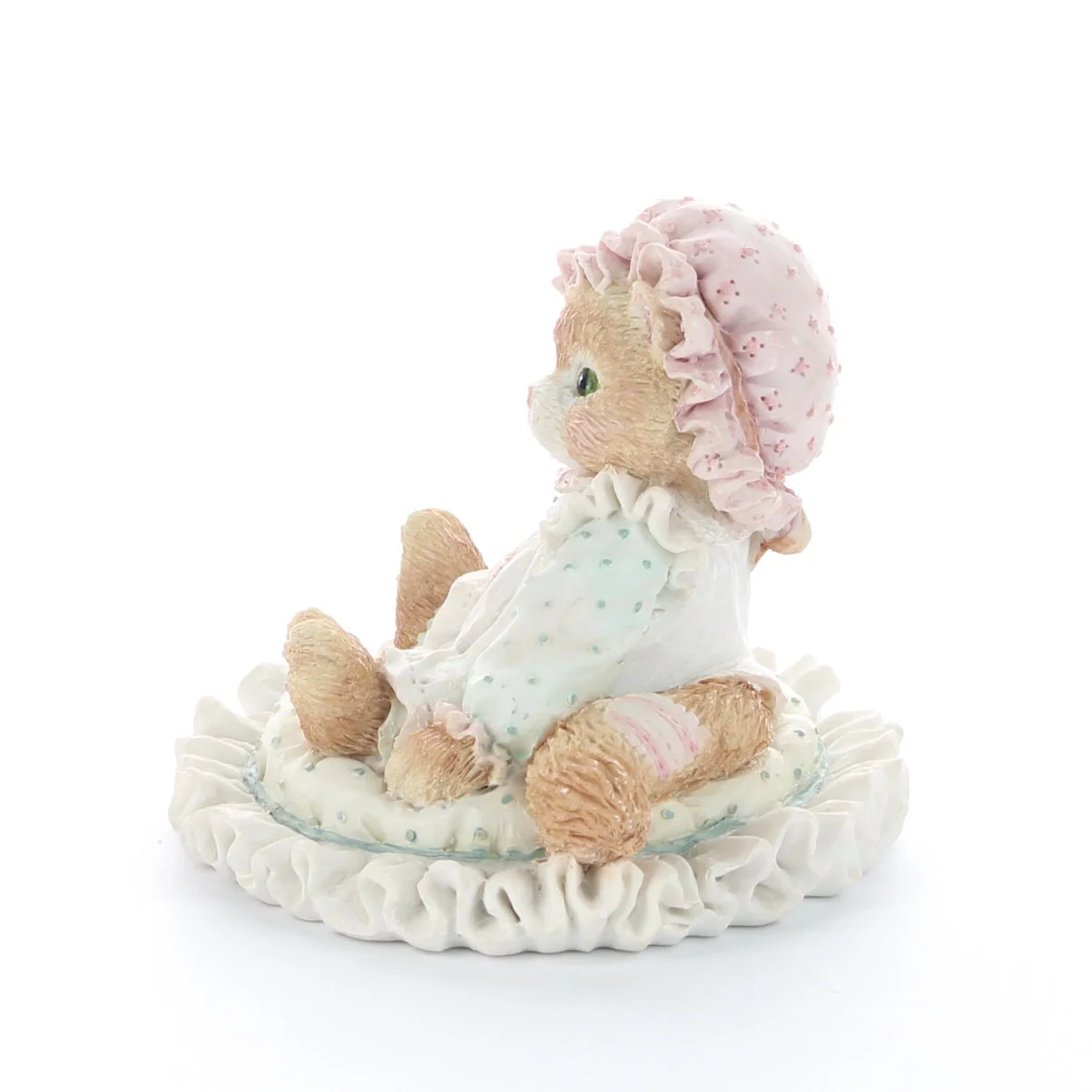This is a retired vintage figurine from The Calico Kittens Collection. Designed by Priscilla Hillman and produced by Enesco, this piece is named 'Just Thinking About You' and is Catalog Style #627917. It is a vintage collectible that was made in 1992.